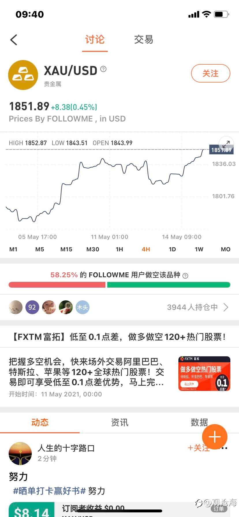 我已报名#FOLLOWME交易大赛#向最高奖励发起冲击,行动创造价值心动不如行动 https://www.followme.ceo/conte...>>