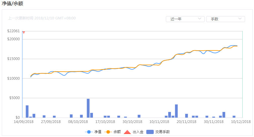 历史订单显示,最大单笔交易仅为0.31手,当时交易的是镑美;且日均交易手数也只有0.179手。因为谨慎的风险与仓位管理,该交易员的资金最大回撤仅仅只有7.18%。