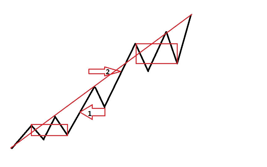 比如你看到这走势的时候是箭头1的位置,你怎么做?(没有箭头后面的行情) 做日内的话,这里就要比较1箭头上来的这一笔有没有背驰,没有背驰就好说了,在小级别找阴线做多单!顺着行情做,也就是做顺势了,你这样所绝对比其他的方法胜率要高,因为你的顺势和其他手法的顺势更为强大。但是如果有背驰的话,就不能做多单了,可以做调整,也就是盘整背驰的一卖,下去时候再自行判断是形成三买还是中枢震荡。在箭头2的位置也一样。至于你看到行情的时候在中枢里面,那下次在说吧,一篇帖子不能弄太长。
