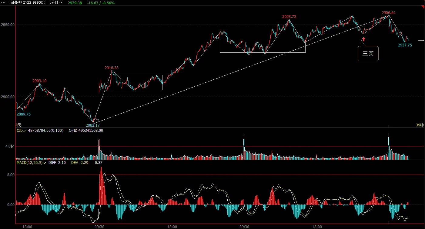 这个图是标准的缠论走势,这里假设看这篇文章给的都知道一买二买三买在哪里(不知道的自己补补课)。做日内的时候发现当天正好有买卖点,那自然你没有任何异议,做就对了,一个30分钟的买卖点是要等好几天的,你又做日内,那么是无法做到完整的,一个买卖点做进去,当天行情不一定就能走出来。