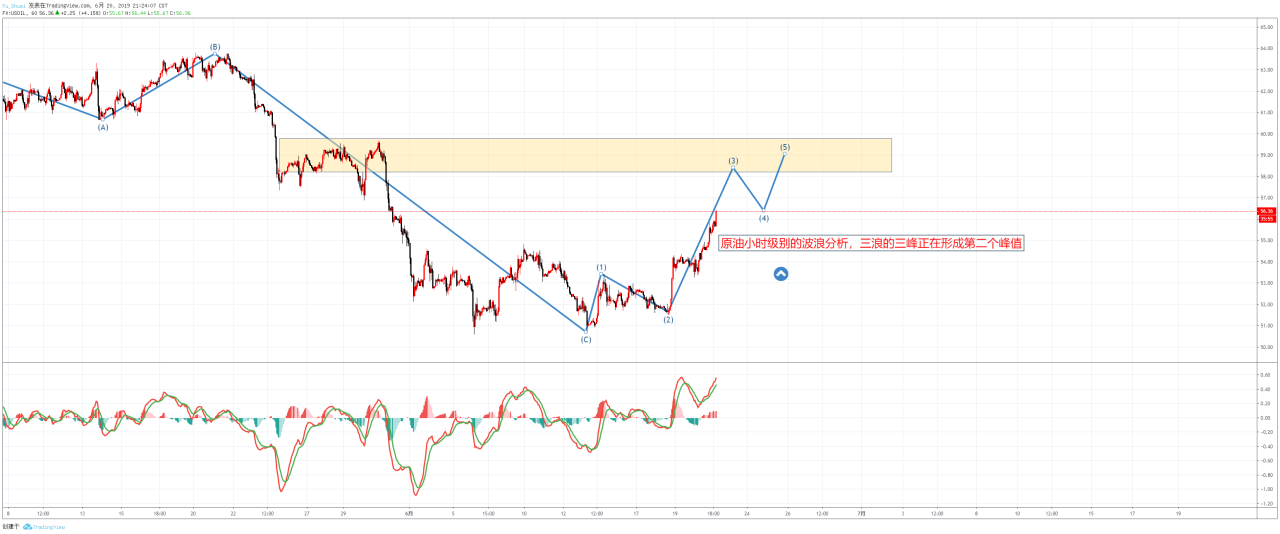 举例20190704原油小时图$WTI$就出现了一个对称三角形调整。