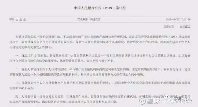 8月25日下午,央行发布2019年第16号公告,2019年10月8日起个人住房贷款利率将调整!