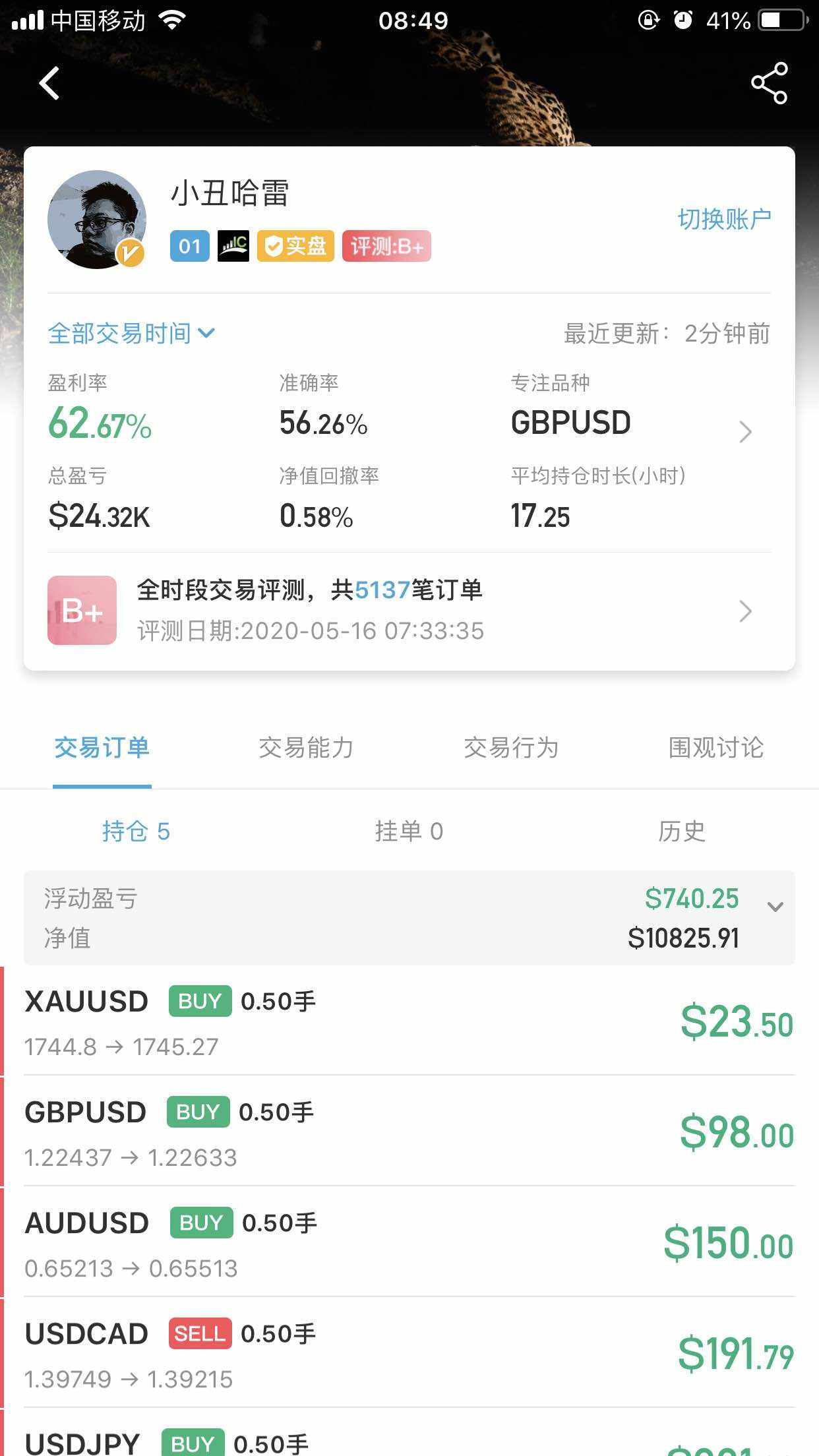 如果大家有跟他的话,应该知道,他之前做单一直是轻仓,扛单!平仓当日总有收益,1分钱也是爱嘛
