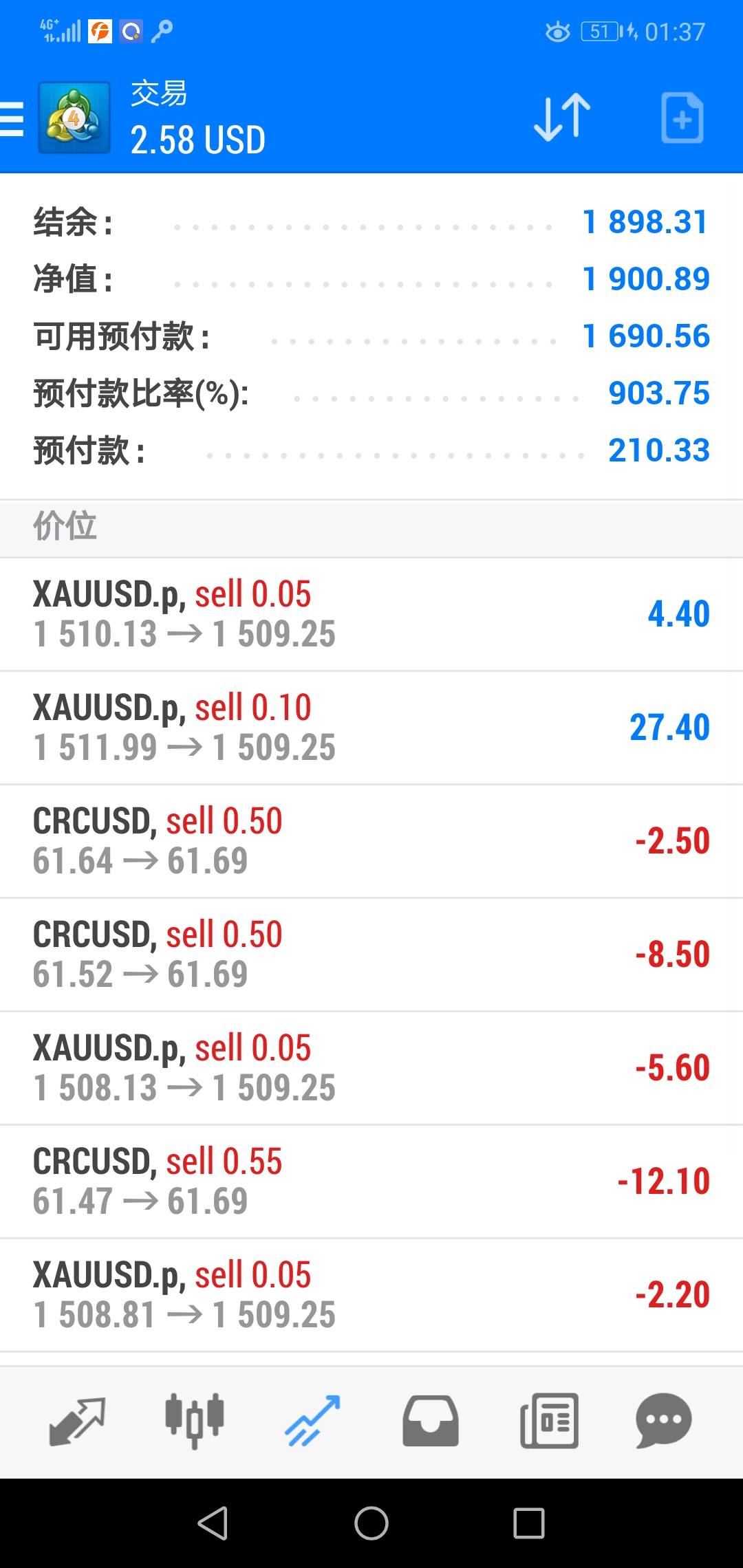 早上起来一看黄金长到1500,我就感觉昨晚应该有不少扛单侠爆仓,好多分析师87喊空,93加仓空,然后96又加空,昨晚16美金长幅,仓位重的肯定爆了,还好昨天我没开空单,因为我看着一直是多头走势,我白天上班盯盘不方便,晚上点位已经很高了,昨晚就是回落做多的走势,喊空的分析师不好意思,市场没给面子,原油昨晚也大长,好多分析师在60.6喊空,我也是看着趋势不象空头,我也没空,但我也没多,因为昨晚收盘早,今天又放假,单子进去难受,所以没做单,现在看看昨晚躲过了亏损啊,对每天交易的来说,不亏也是赚啊,昨晚我也关闭了跟单,我就怕出幺蛾子,真是猜对了,做空黄金和做空油的没爆的也被打止损了,现在又发现这个市场空仓也是一种赚钱的方式,相对昨晚亏损的来说,我赚了“0”元,发现我水平比以前又进步了呢