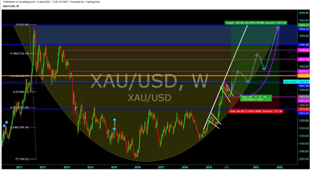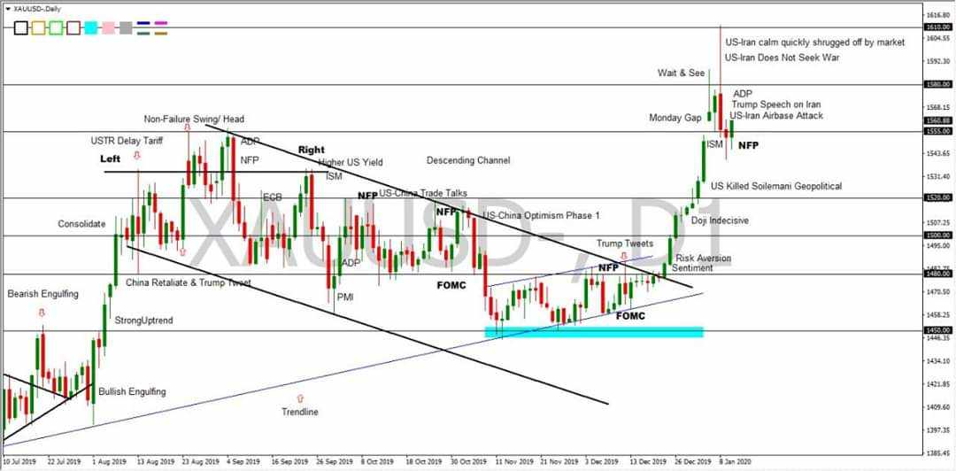 Gold quickly move up approaching Resistance 1550 selepas US strikes Iran dan killed Qasem Soleimani.