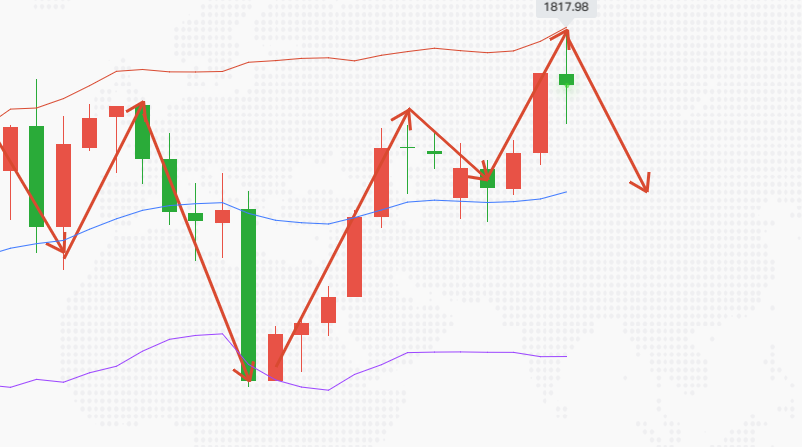 短线4小时走势形态来看,今天黄金的走势主要取决于这个小区间的破位情况。当前价格围绕在中轨震荡,上下影线都比较长,说明短线多空力量还是比较均衡,但是整体短期布林带是偏下行但势头不足,且KDJ三线粘合油拐头向下形成死叉的迹象,MACD短线死叉,从4小时图更小周期中可以看到上升动能衰竭的表现,小时周期,动能也是转空走势,现在四小时与小时图形成共震。上方在27-30一线,下则看17-19的下破,日内如下破19一线,势必会有一波加速下行至1710附近,综合来看27-30以上可尝试空!