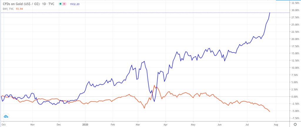 Break of former top at $1920 was quite fast, although we expected stronger headwinds her, but current circumstances with high political tensions, rising number of new virus cases and uncertainty about global economic recovery, prompted investors into safety.