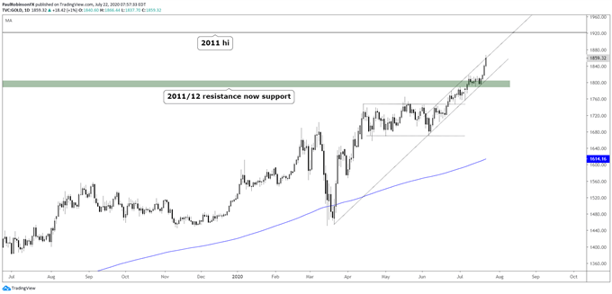 Today’s close above former all-time high will generate initial bullish signal for extension towards psychological $2000 barrier, with dip-buying above $1900 seen as favored near-term scenario.