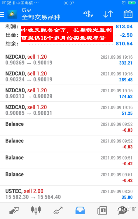 3. 选定一两个稳健的信号,分开帐户,或者把仓位按交易信号的健议来,长期的跟随下去,不急不燥,一年下来,你会发现,你所跟单赚到的,比社区95%以上的人赚的都多,没有必要去干预,疑人不用,用人不疑,自已选的交易员,还不相信,那你是这何苦,还不如远离这个市场,或者自已玩#智能跟随##交易技巧#