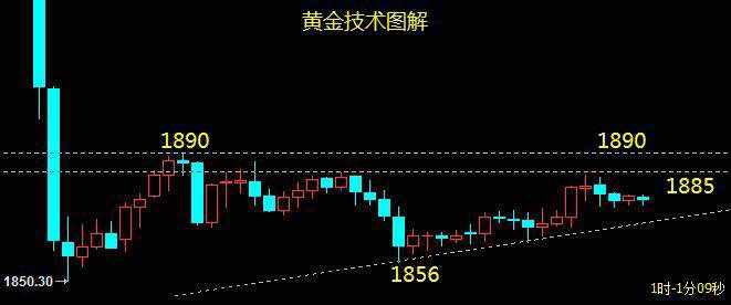 而日内的行情白天下跌之后美盘上涨,价格目前保持1866-72区间的震荡,而1866这个位置是白天的低点位置,保持1866上方震荡行情短线还是属于多头,如果价格跌破行情可能再度试探1859-60区域,此位置是日内上涨回撤的618位置。在下去就是1855一线,从目前的行情形态表现来看今晚再破新高1877的概率相对较小,可能半夜的行情就是1860-70区间的震荡结束。