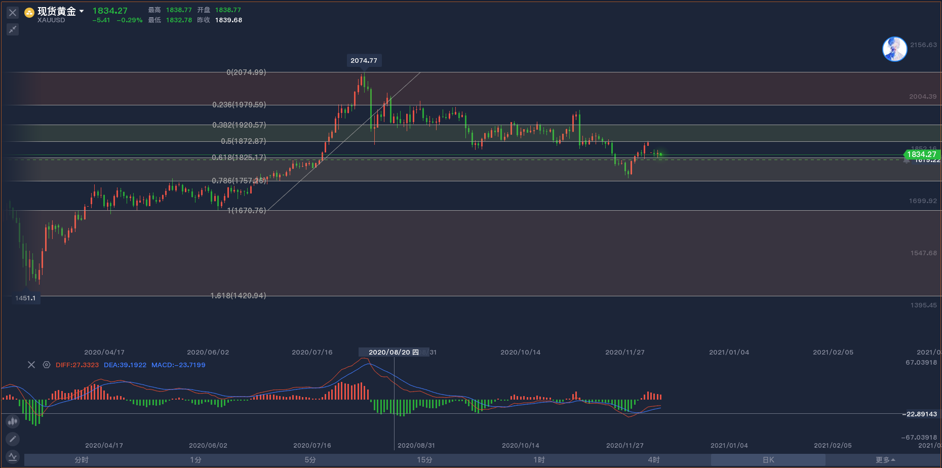 目前黄金的行情基本和我昨日分析的一样,1900-1905是大家需要关注的位置,我现在也不知道刺激计划会不会在圣诞假期前出来,如果能出来,那么黄金向1920-30区间去。如果出不来,那么周一1906的高点可能就是本周的高位了。