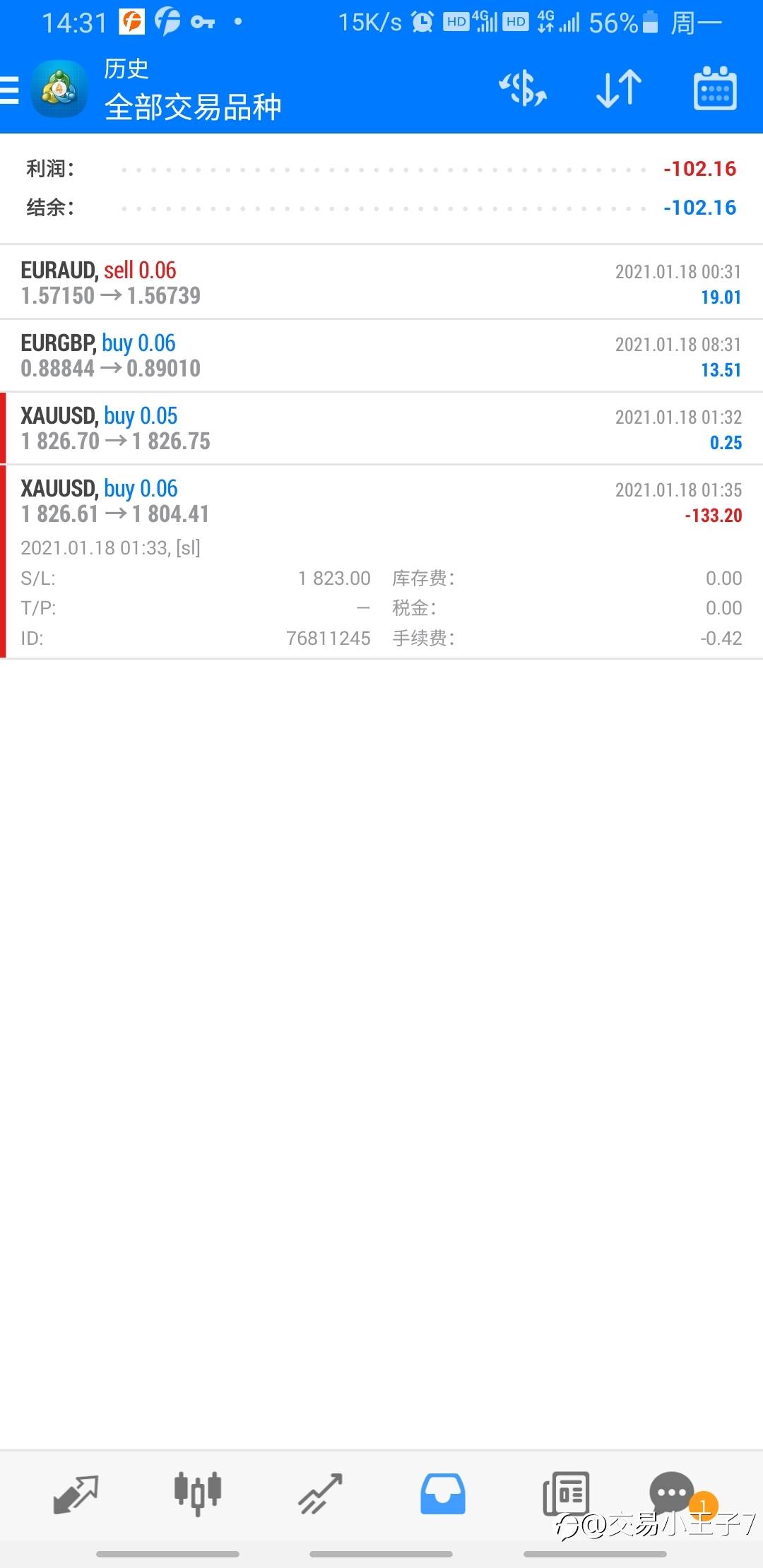 交易小王子7 18 Jan 2021, 14:35 · 阅读量 1,440 关注 今早黄金大跌, 1823的止损,点位到23位置止损线没止损平仓,一直吃损到1804后自动平仓。。。。。服了 希望I C配合处理 风险提示:本文所述仅代表作者个人观点,不代表 Followme 的官方立场。Followme 不对内容的准确性、完整性或可靠性作出任何保证,对于基于该内容所采取的任何行为,不承担任何责任,除非另有书面明确说明。 赞赏作者 喜欢的话,赞赏支持一下