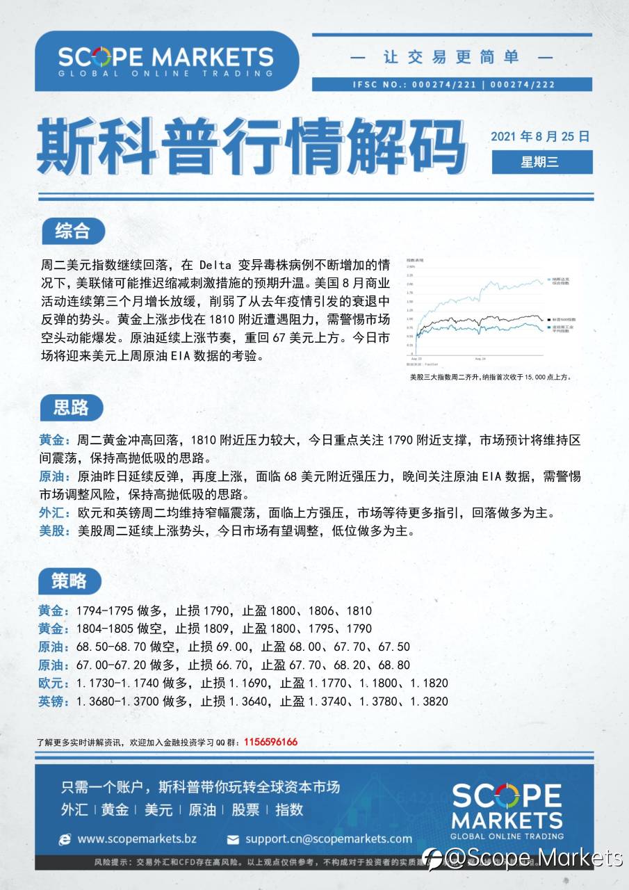黄金昨日延续下跌走势,1800美元关口压力凸显,金价暴跌至1770美元附近,今日白天金价有望对昨日大跌调整,但不宜过分看多,警惕空头再度来袭。原油昨日创下新高暴跌,空头有望延续,不宜过分看高反弹空间,保持高抛低吸思路。欧元和英镑昨日均上行,目前均处于上涨通道中,但短线上方压力均较大,不宜过分看多。美股近期持续处于高位,消息面的利好消息较多,继续做多为主。