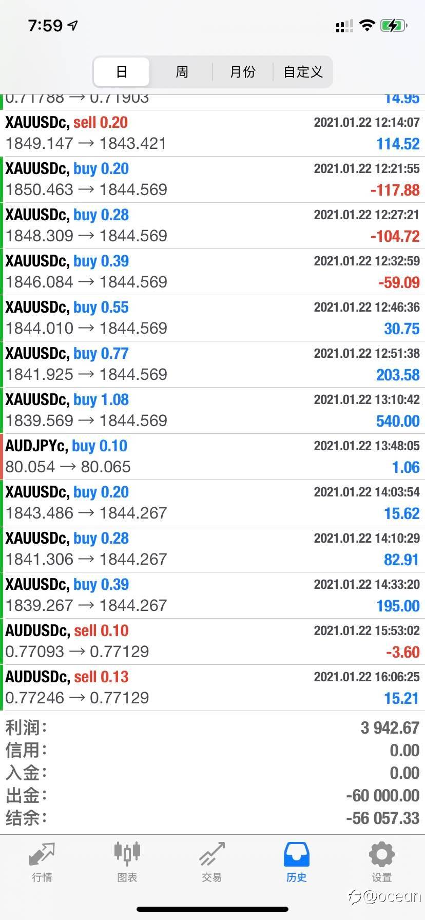 ocean 25 Feb 2021, 09:46 · 阅读量 990 关注 我自己的EA做单交易收益率昨天超过10000%了,哈哈 风险提示:本文所述仅代表作者个人观点,不代表 Followme 的官方立场。Followme 不对内容的准确性、完整性或可靠性作出任何保证,对于基于该内容所采取的任何行为,不承担任何责任,除非另有书面明确说明。 赞赏作者 喜欢的话,赞赏支持一下
