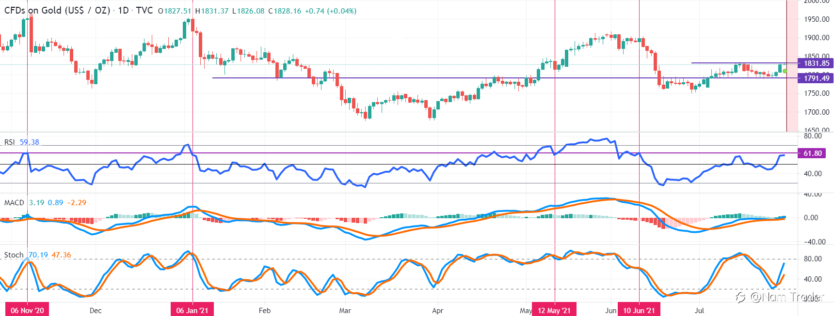 Từ giai đoạn xung động trước đó, giá bắt đầu hình thành kênh điều chỉnh, đi ngang. Giá mới nhất đã đẩy giá lên, nhưng nó ở đâu so với mức cao trước đó?