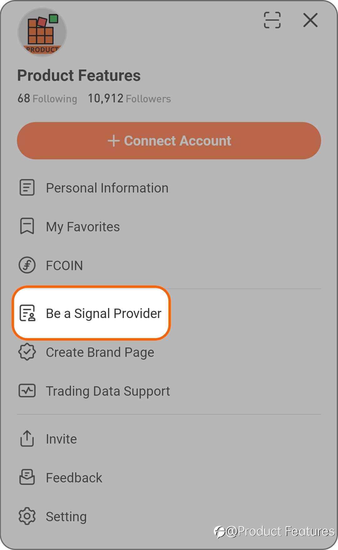 So far, FOLLOWME supports account connections of more than 3,500 brokers. In order to encourage more authentic and reliable trading signal connections and presentations, as well as protect signal list subscribers’ rights, FOLLOWME strictly selects listed signal brokers, and thus formulated "Signal List for Licensed Brokers ".