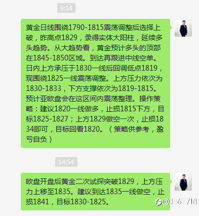 黄金短线看1808-1790震荡横盘,重点关注价格破位方向。突破1808,则回调1802做多,止损1795,目标1810-1815;若跌破1790,则反弹1795空,止损1802,目标1784-1780。先不着急操作,关注1808-1790的破位方向再定夺。综合来看,今日操作思路上建议反弹高空为主,回调低多为辅,上方短期重点关注1810-1815一线阻力,下方短期重点关注1790-1795一线支撑(JS陆柒柒壹捌)。