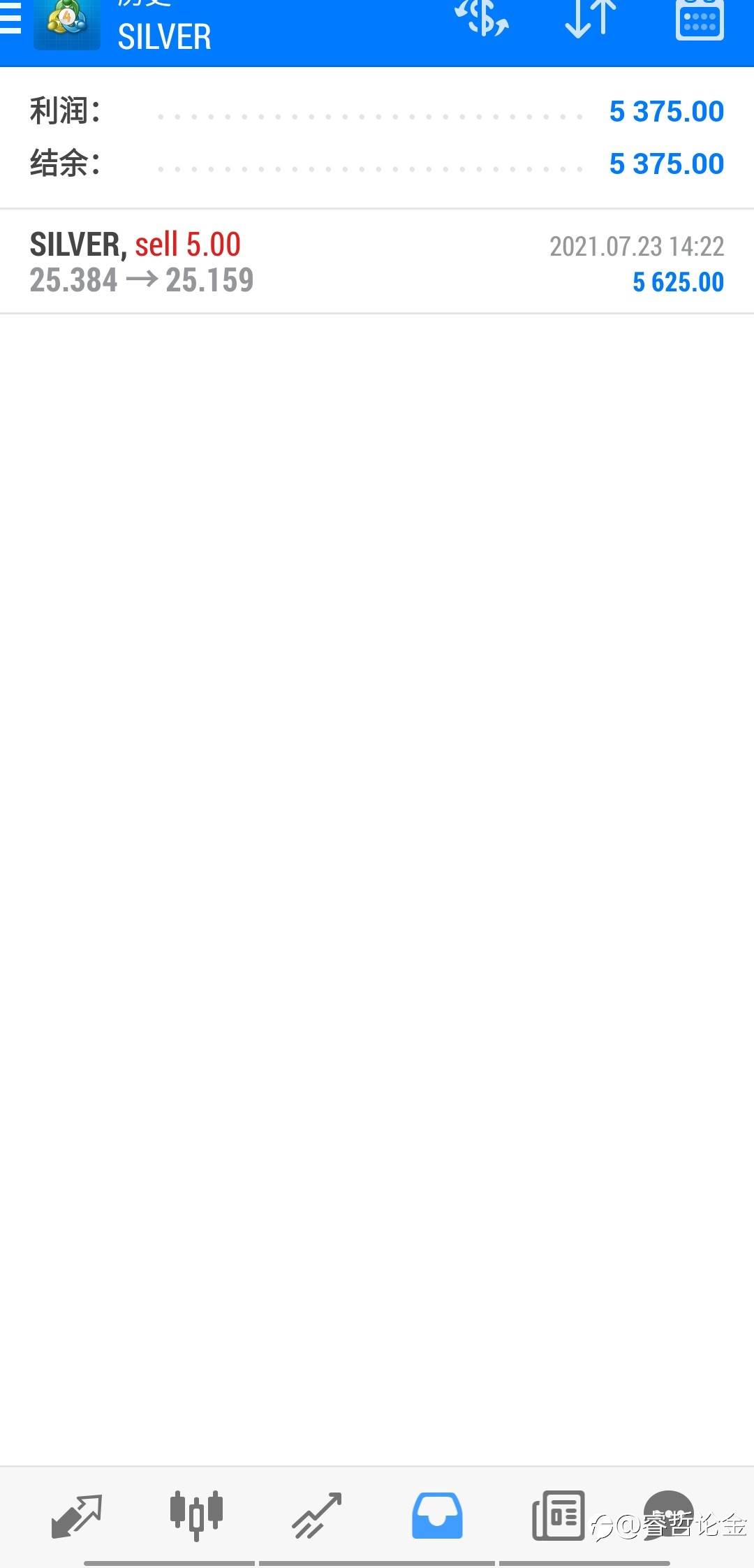 睿哲论金 23 Jul 2021, 20:42 · 阅读量 4,506 关注 白银跌势止步于25位置反弹, 空单不再继续持有, 现价25.2兑现全部利润离场规避风险。 已编辑 23 Jul 2021, 20:42 风险提示:本文所述仅代表作者个人观点,不代表 Followme 的官方立场。Followme 不对内容的准确性、完整性或可靠性作出任何保证,对于基于该内容所采取的任何行为,不承担任何责任,除非另有书面明确说明。 赞赏作者 喜欢的话,赞赏支持一下