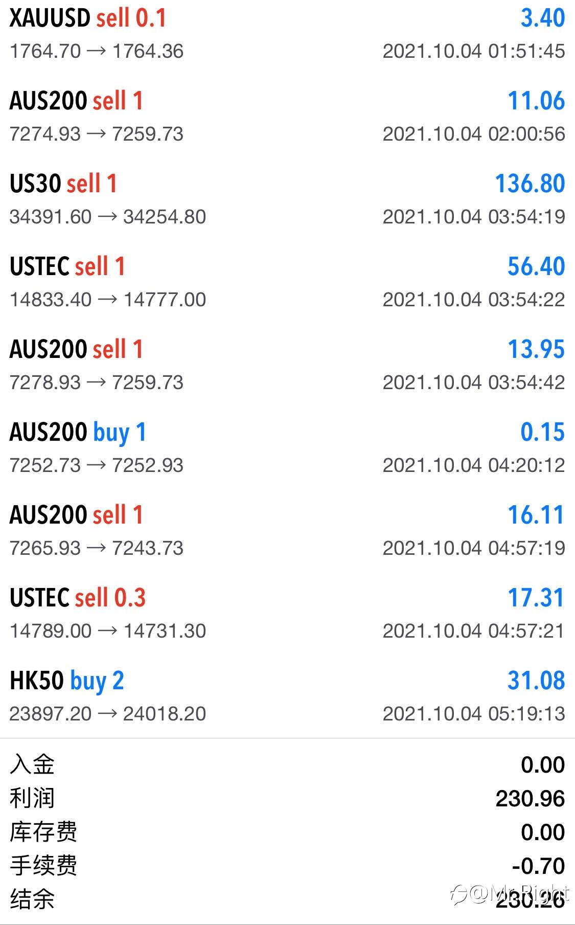Mr.Right 04 Oct 2021, 10:23 · 阅读量 396 关注 早上先走一波股指,美盘还有大行情,期待 风险提示:本文所述仅代表作者个人观点,不代表 Followme 的官方立场。Followme 不对内容的准确性、完整性或可靠性作出任何保证,对于基于该内容所采取的任何行为,不承担任何责任,除非另有书面明确说明。 赞赏作者 喜欢的话,赞赏支持一下