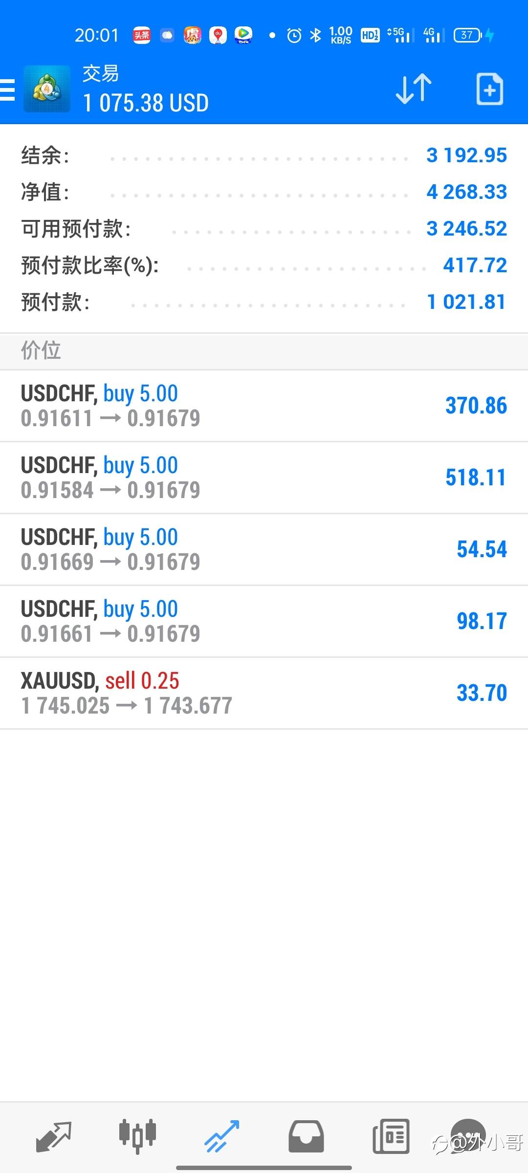 外小哥 31 Oct 2021, 01:42 · 阅读量 968 关注 刚盘点,10月份玩了个寂寞,交易亏7千,返佣返7千,不足的地方太多,唉,减少仓位。 风险提示:本文所述仅代表作者个人观点,不代表 Followme 的官方立场。Followme 不对内容的准确性、完整性或可靠性作出任何保证,对于基于该内容所采取的任何行为,不承担任何责任,除非另有书面明确说明。 赞赏作者 喜欢的话,赞赏支持一下