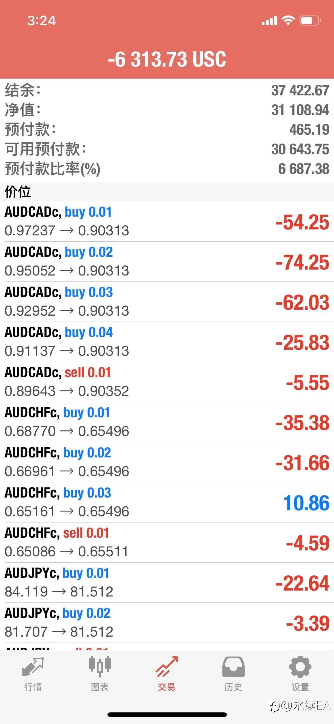 另一个情况,如果破产,价格跌为0,马丁也爆仓。但股票有可能退市,价值为0,但外汇应该不至于吧。因此,马丁策略可以用来跑外汇。