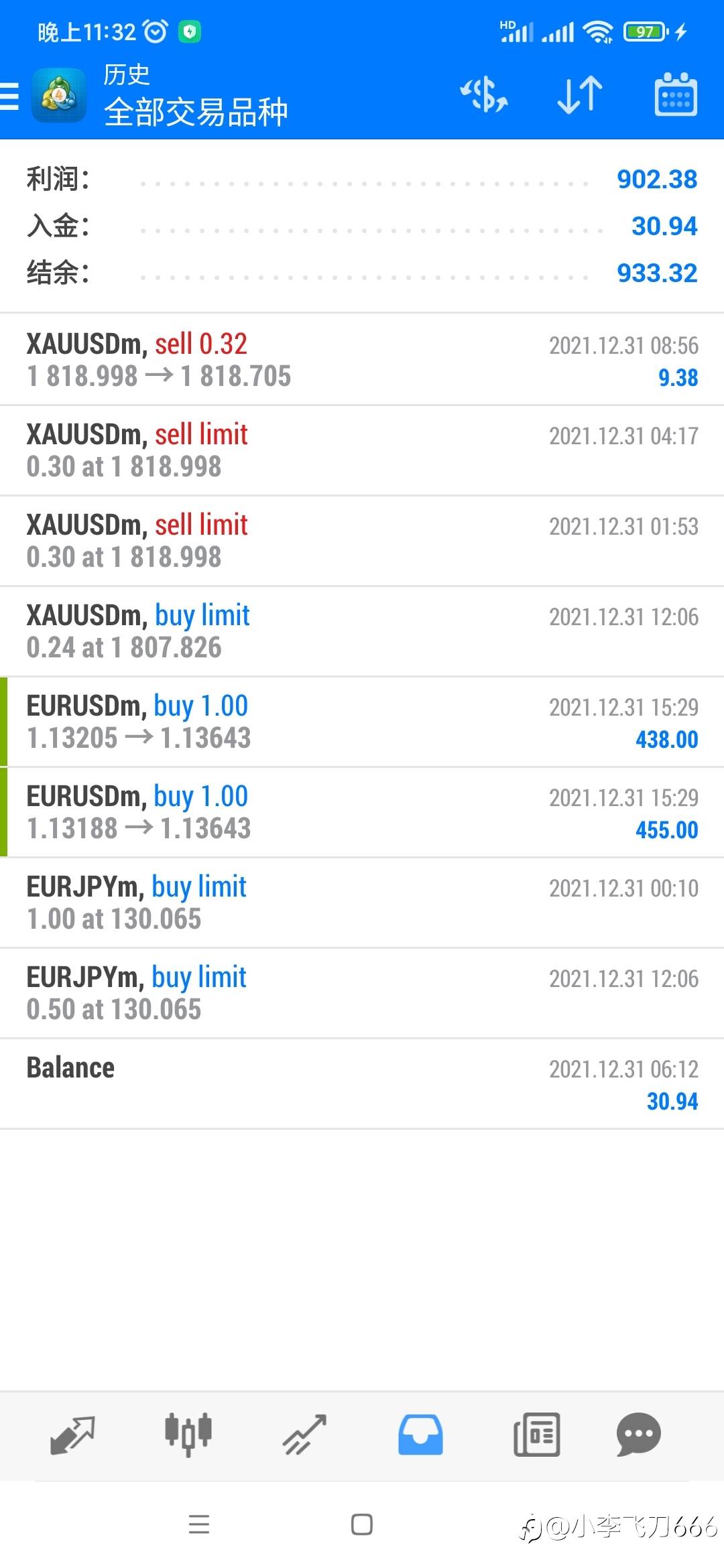 小李飞刀666 07 Jan 2022, 09:11 · 阅读量 1,319 关注 本来备选美加,美瑞,结果成交了美加,这美加不知道是个什么鬼,唉~以后不做直盘了,只做日系,瑞系 风险提示:本文所述仅代表作者个人观点,不代表 Followme 的官方立场。Followme 不对内容的准确性、完整性或可靠性作出任何保证,对于基于该内容所采取的任何行为,不承担任何责任,除非另有书面明确说明。 赞赏作者 喜欢的话,赞赏支持一下