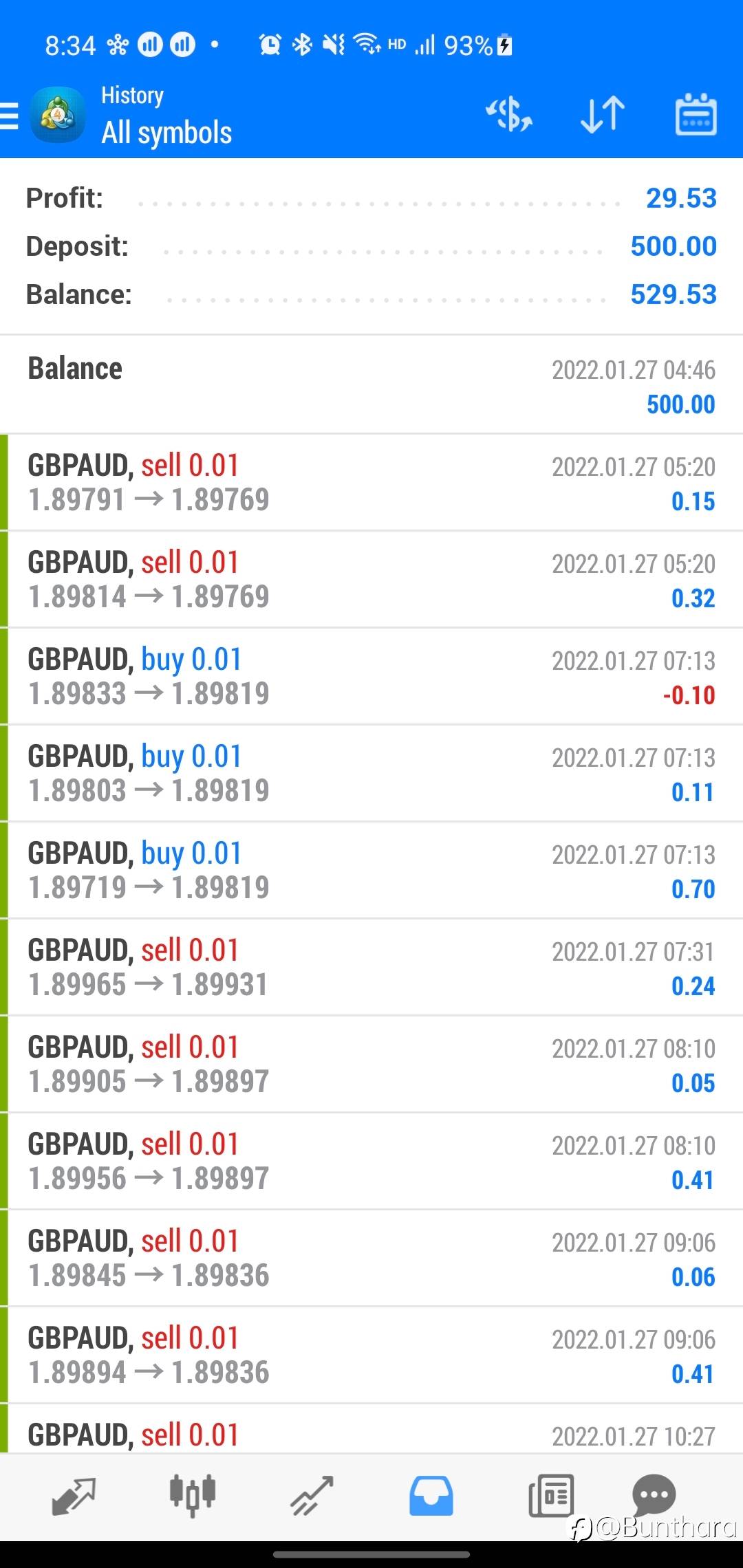 Bunthara 11 Feb 2022, 19:14 · 阅读量 413 关注 查看翻译 😇 Balance $1K (27th Jan) Now $1151 (11th Feb) --> $151 for 12days 风险提示:本文所述仅代表作者个人观点,不代表 Followme 的官方立场。Followme 不对内容的准确性、完整性或可靠性作出任何保证,对于基于该内容所采取的任何行为,不承担任何责任,除非另有书面明确说明。 赞赏作者 喜欢的话,赞赏支持一下