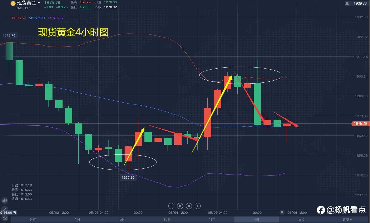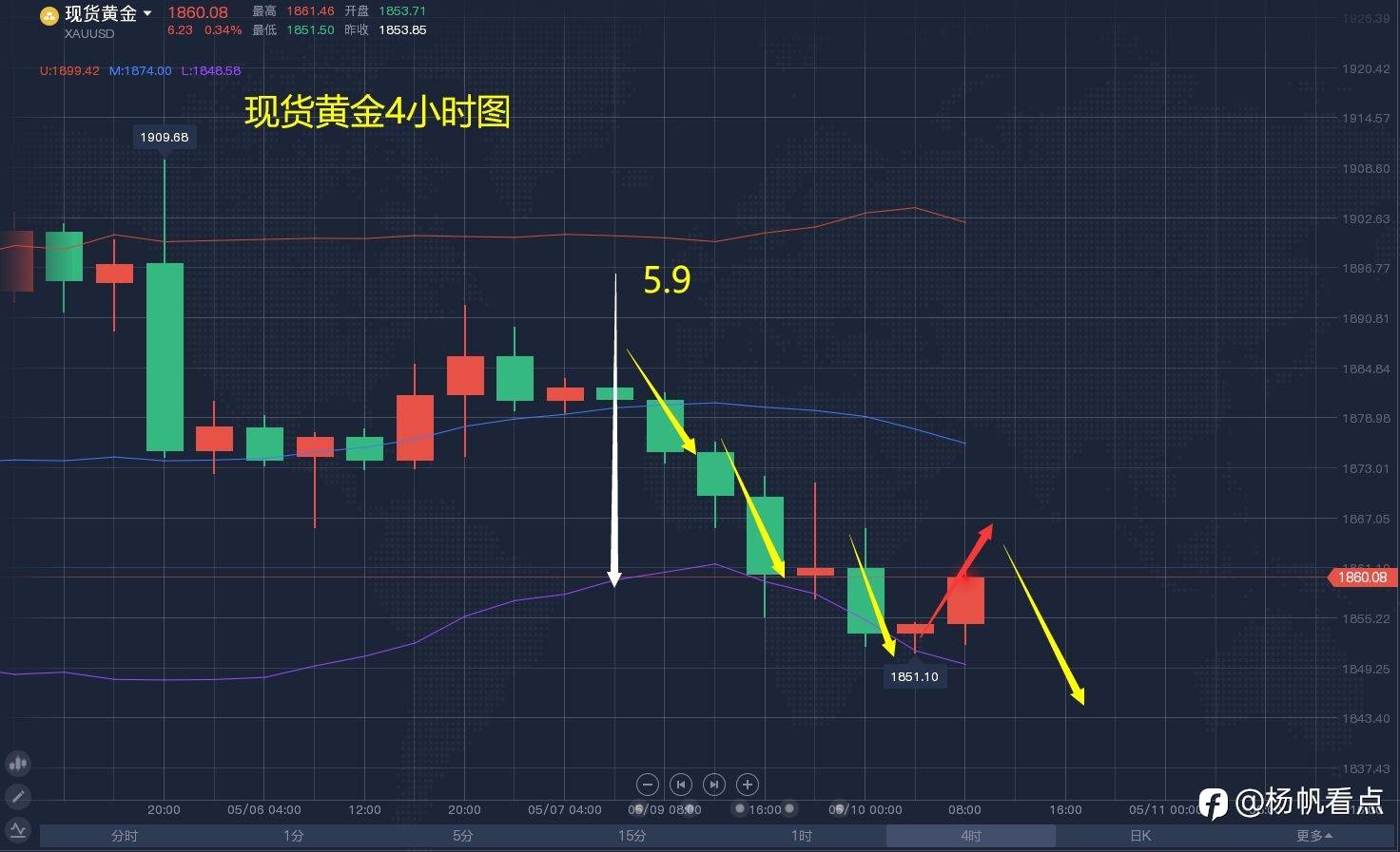 📣📣📣现货黄金自开盘以来一路呈下跌趋势,哪里是新低,我们也不能预测。目前的状况是,下跌到1850后,向上拉伸到1860。目前可以做空。