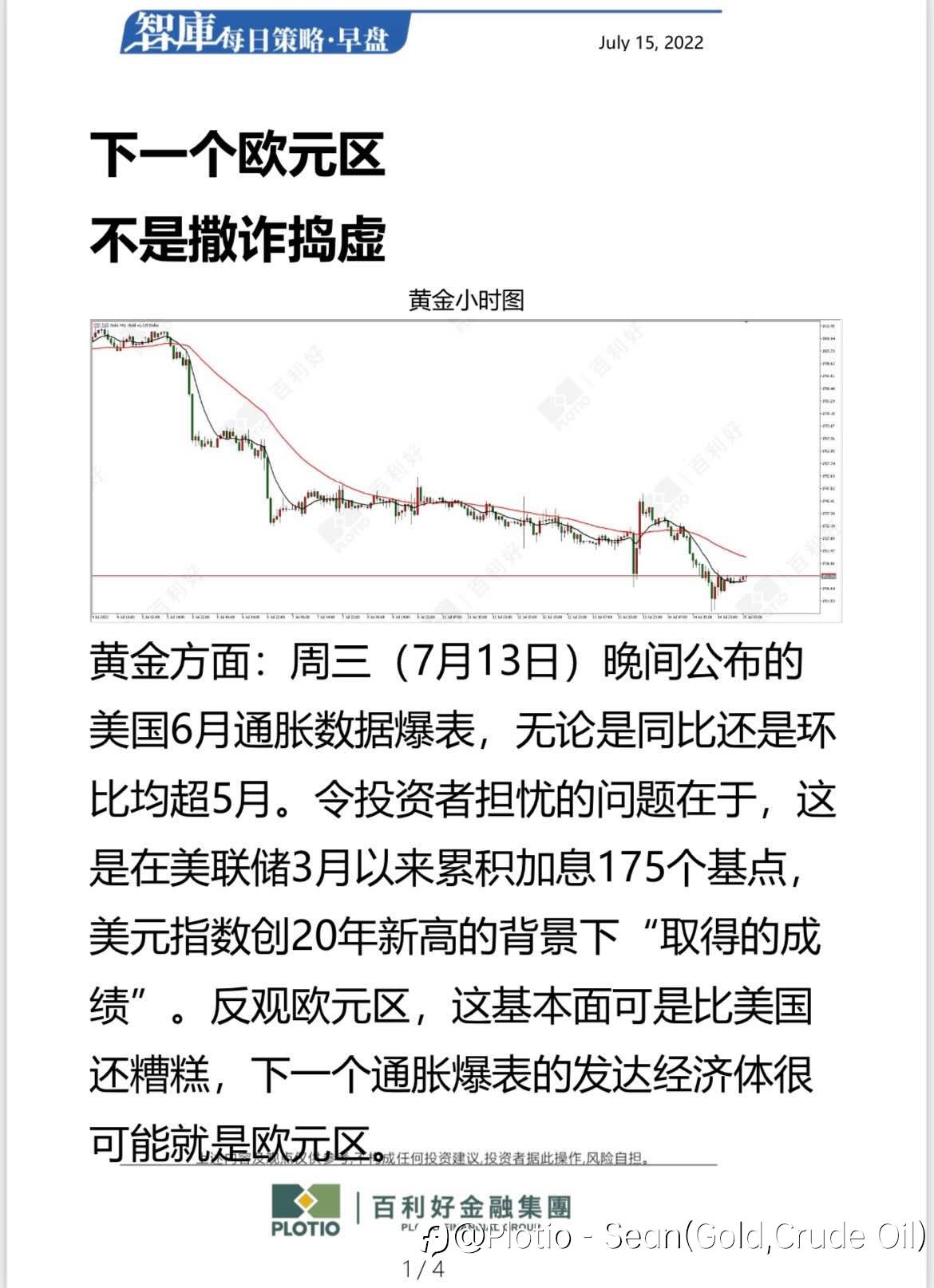 Plotio - Sean(Gold,Crude Oil) 19 Jul 2022, 10:22 · 阅读量 733 关注 查看翻译 市场交投清淡 金价总体承压 风险提示:本文所述仅代表作者个人观点,不代表 Followme 的官方立场。Followme 不对内容的准确性、完整性或可靠性作出任何保证,对于基于该内容所采取的任何行为,不承担任何责任,除非另有书面明确说明。 赞赏作者 喜欢的话,赞赏支持一下