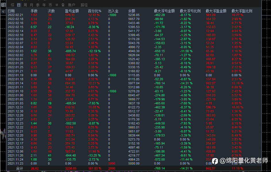 绵阳量化黄老师 27 Oct 2022, 20:46 · 阅读量 437 关注 何为稳定,一直都是专心专注 风险提示:本文所述仅代表作者个人观点,不代表 Followme 的官方立场。Followme 不对内容的准确性、完整性或可靠性作出任何保证,对于基于该内容所采取的任何行为,不承担任何责任,除非另有书面明确说明。 赞赏作者 喜欢的话,赞赏支持一下