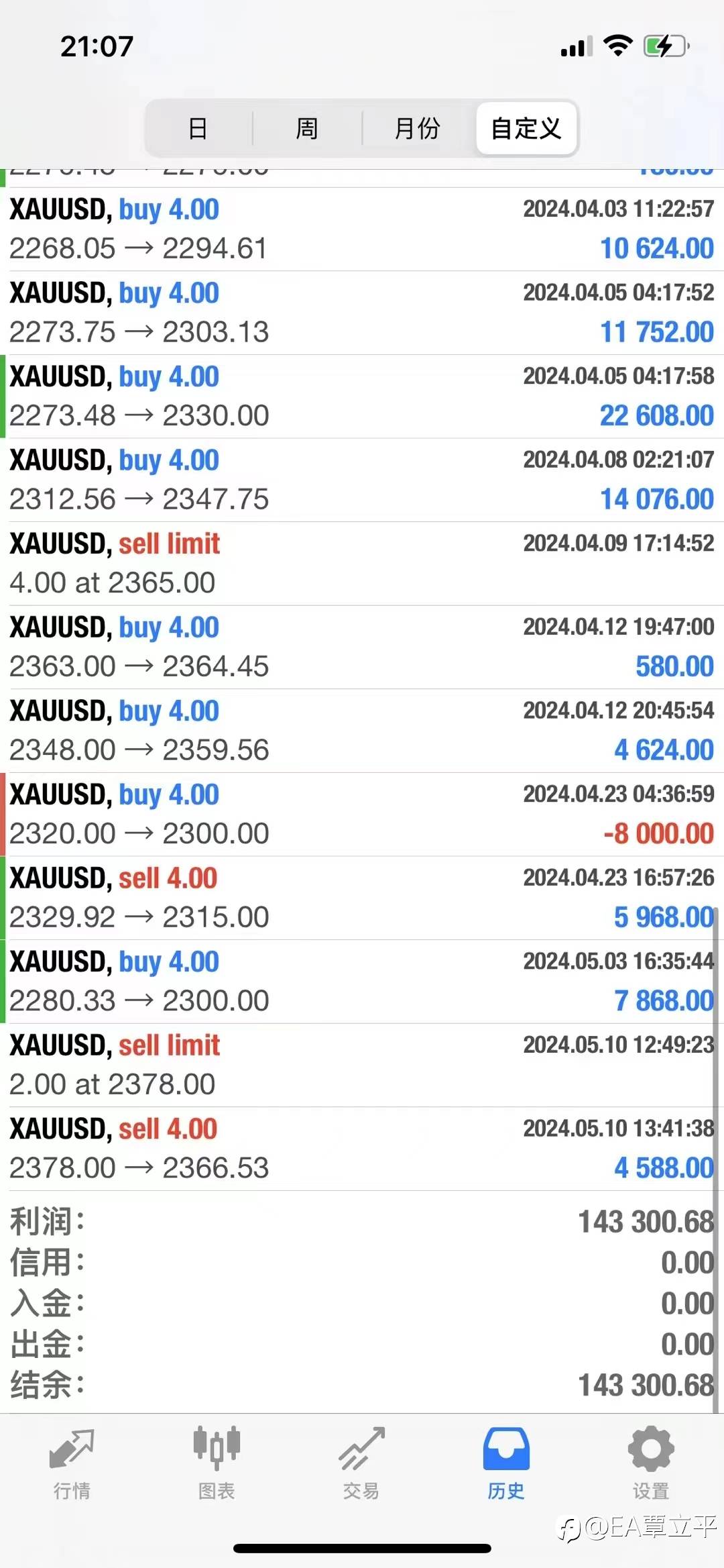 EA覃立平 11 Nov 2022, 15:47 · 阅读量 229 关注 运行时长:1年六个月,低频3.0智能科技ea,双向开单,涨跌均可获利离场,单边行情不会死板加仓,月化10%-15%,稳健型策略,日均收益:40-100u#伦敦金##投资理财##黄金# 风险提示:本文所述仅代表作者个人观点,不代表 Followme 的官方立场。Followme 不对内容的准确性、完整性或可靠性作出任何保证,对于基于该内容所采取的任何行为,不承担任何责任,除非另有书面明确说明。 赞赏作者 喜欢的话,赞赏支持一下