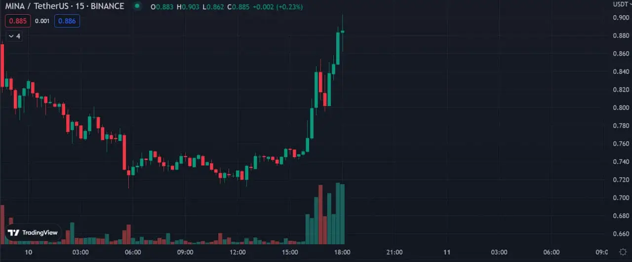 Sau thông tin này thì các đồng coin hệ ZK đã có ghi nhận sự tăng trưởng. Điển hình như MINA, một Layer-1 sử dụng công nghệ ZK, đã tăng hơn 10% trong thời gian ngắn.