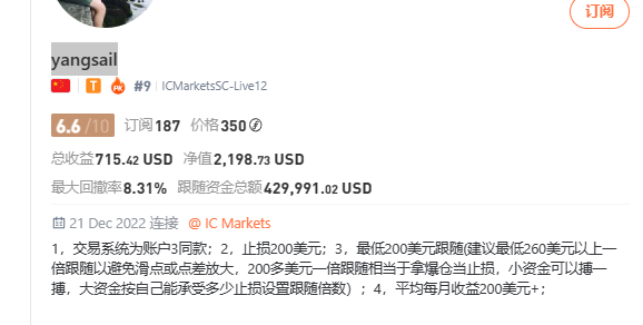 社区对交易花的各种评价也没有,这也说明交易花也在用自己的方式稳步前行,我画圈的位置单身,希望单身的交易员们可以看到。通过上面的分析,我倒是觉得交易花的账户还是可以跟随的,就是不知道她的订阅费能不能在低一点。