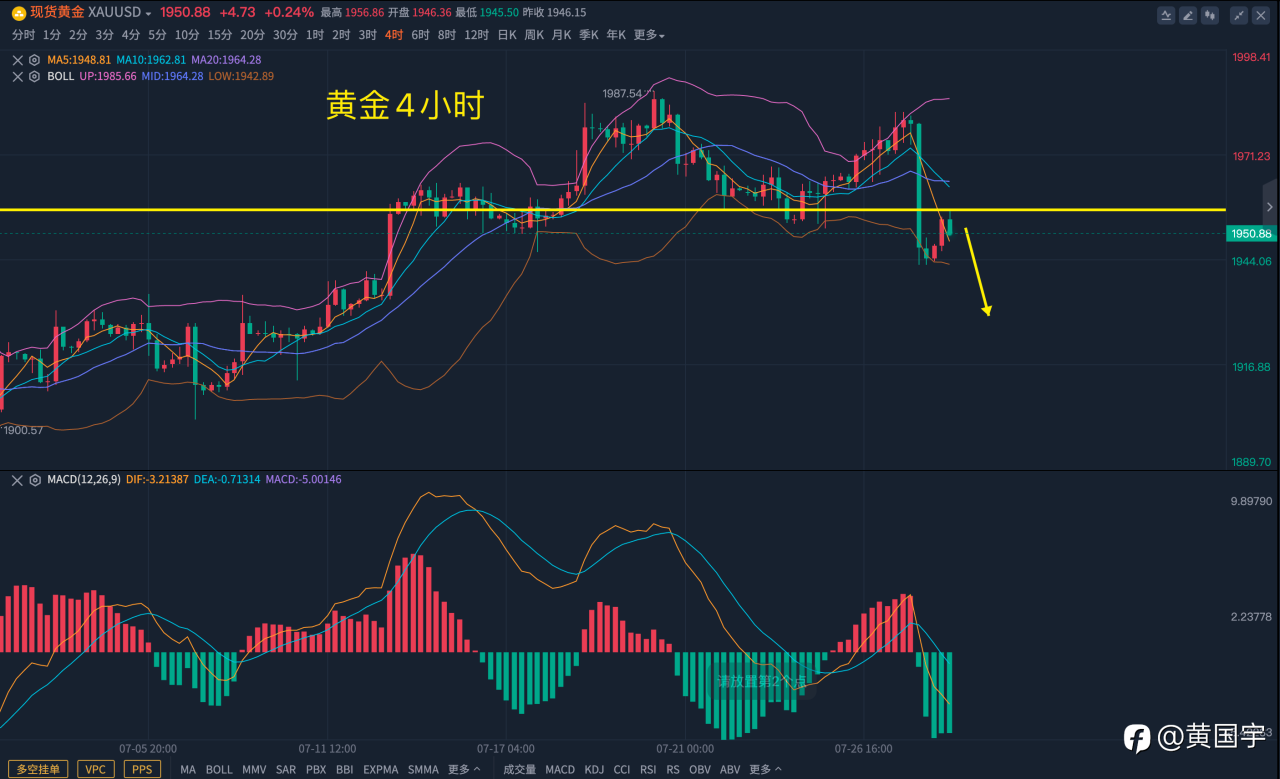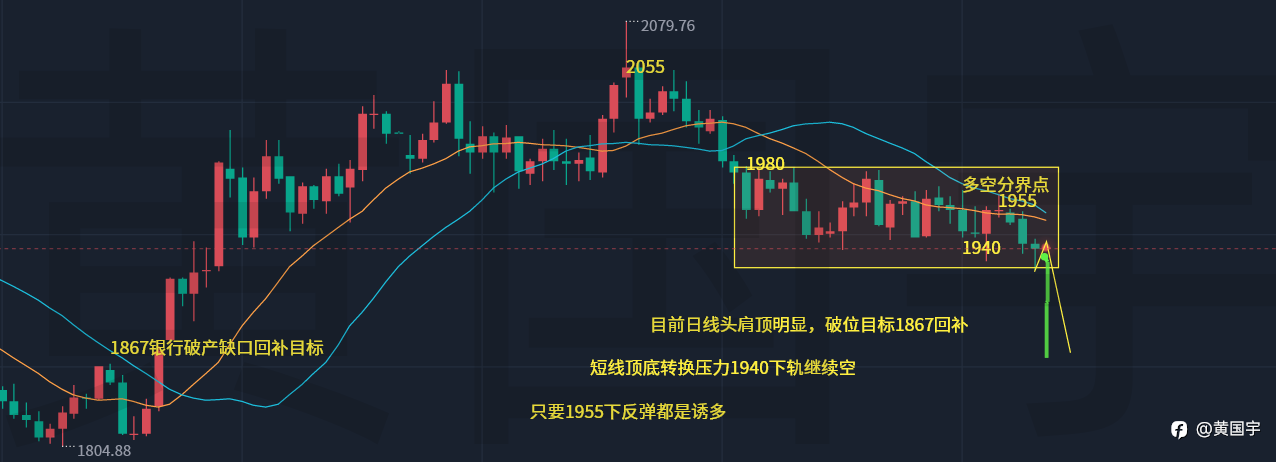 既然突破1940区域,回到我们一起的震荡节奏,1940到1985震荡,激进1977到1981附近空1988损目标1965到1950到1920到11900到1967,如果回落激进1957到1961区域多1953损博弈8到10美金反弹就好。