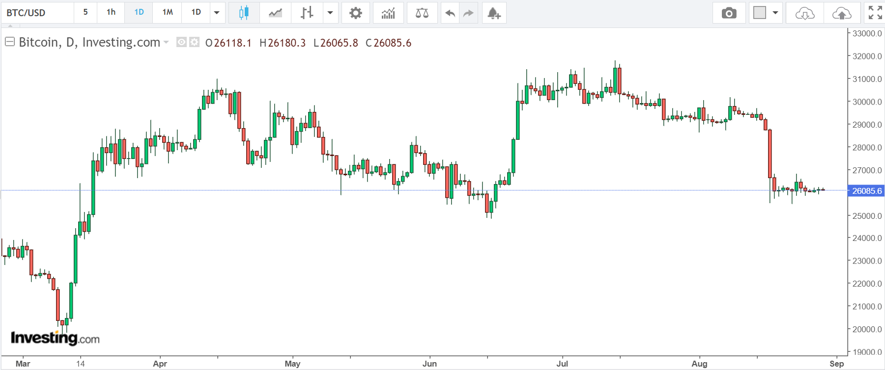 Tài sản tiền điện tử hàng đầu cũng đã nỗ lực đóng nến hàng ngày trong sắc xanh tại $ 27.712 trước khi giảm nhẹ về quanh $ 27.500 vào thời điểm hiện tại.