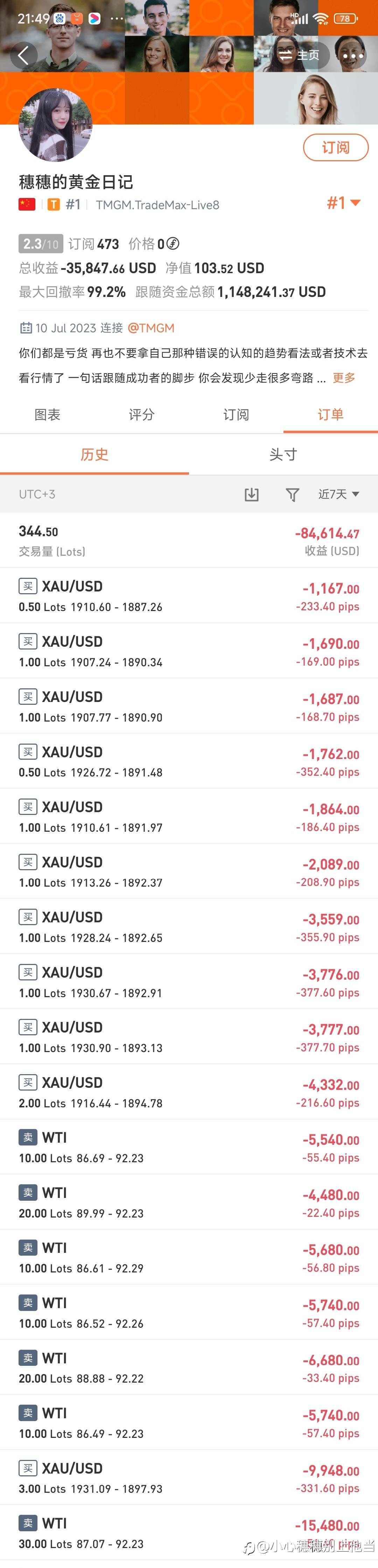 小心穗穗别上他当 28 Sep 2023, 00:22 · 阅读量 3,128 关注 穗穗的黄金日记,小号叫此花绮谭,在自己内部v群大放厥词,说黄金要涨到1975,而且订阅他账户的跟他开多死抗,爆了不计其数的韭菜,看看他内部群怎么骂他的! 风险提示:本文所述仅代表作者个人观点,不代表 Followme 的官方立场。Followme 不对内容的准确性、完整性或可靠性作出任何保证,对于基于该内容所采取的任何行为,不承担任何责任,除非另有书面明确说明。 赞赏作者 喜欢的话,赞赏支持一下