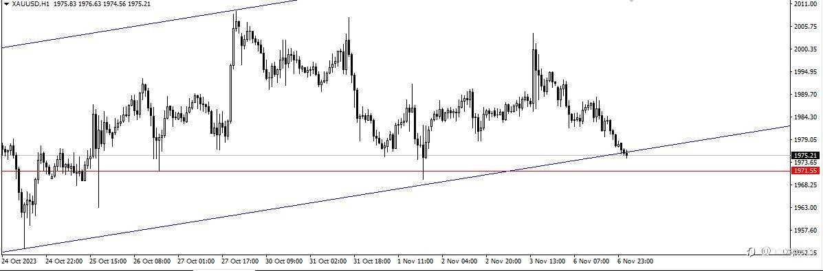 一、黄金行情分析:黄金周五突破前高1974,形成三浪突破,今天早上回踩前高,刚好也是上升通道的支撑位。可以在这附近进多。