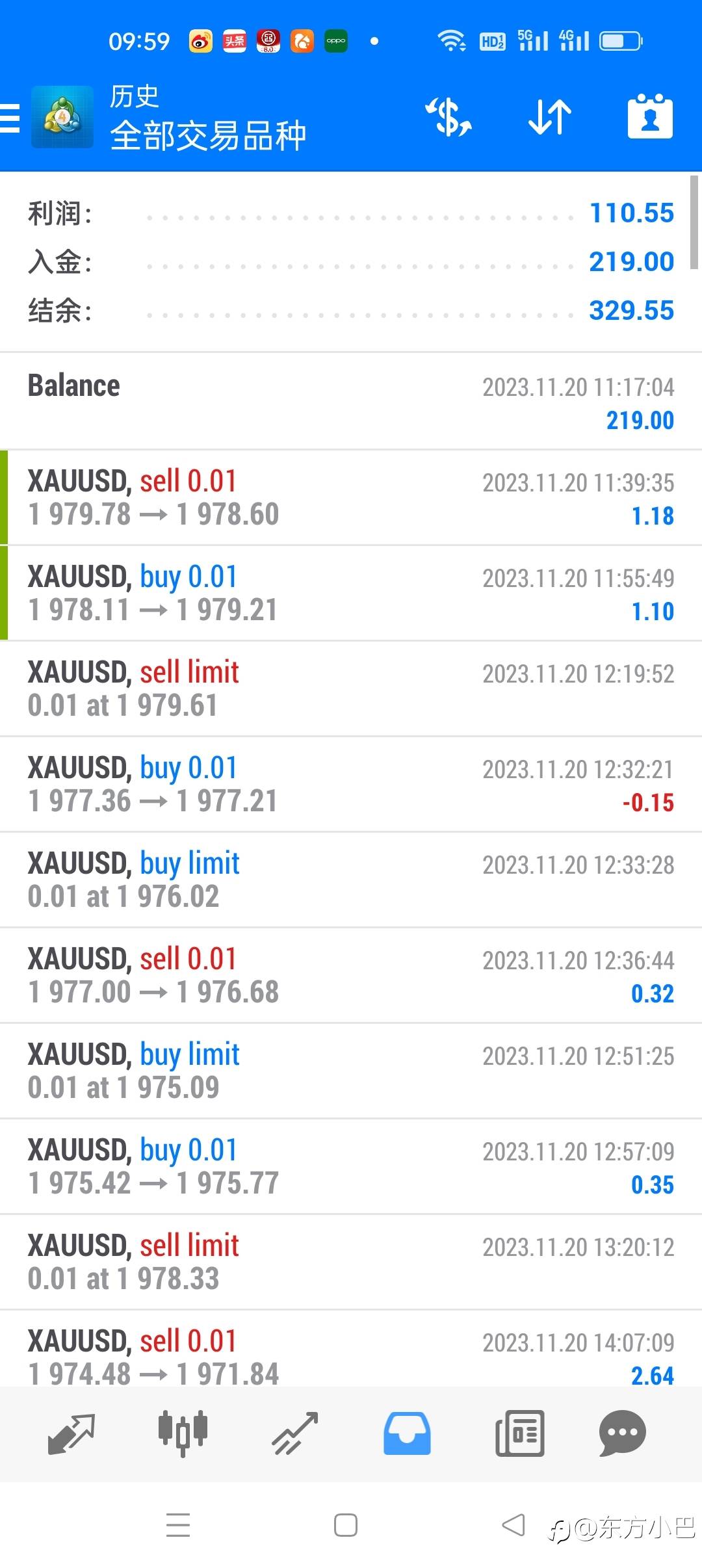 东方小巴 20 Nov 2023, 18:15 · 阅读量 815 关注 戒色容易戒赌难,2023.11.20砸锅卖铁入金219美金继续玩😜😜😜 风险提示:本文所述仅代表作者个人观点,不代表 Followme 的官方立场。Followme 不对内容的准确性、完整性或可靠性作出任何保证,对于基于该内容所采取的任何行为,不承担任何责任,除非另有书面明确说明。 赞赏作者 喜欢的话,赞赏支持一下
