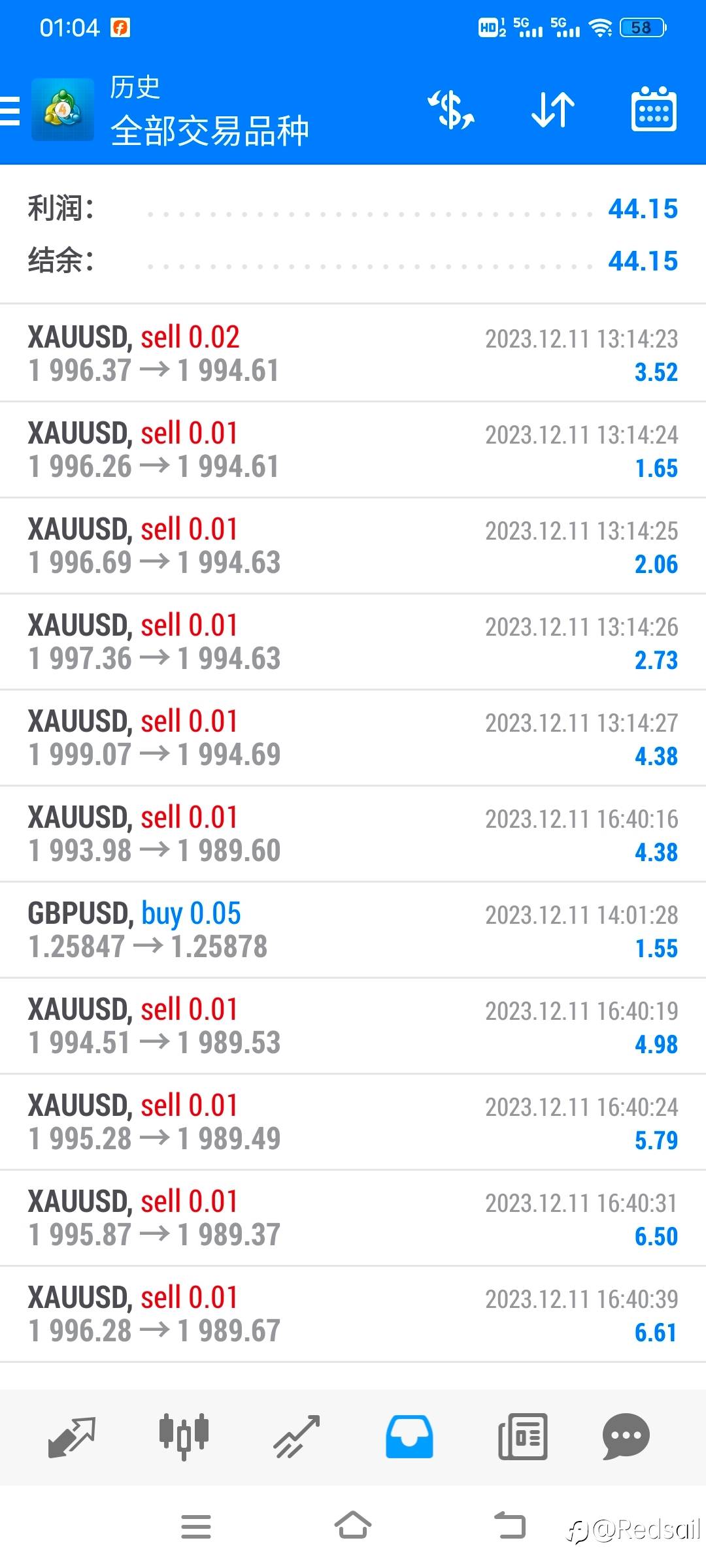 Redsail 12 Dec 2023, 01:12 · 阅读量 3,368 关注 #XAU/USD# #TMGM# 😍我这是爆仓的节奏吗?垃圾爆仓群别拉我进去。 风险提示:本文所述仅代表作者个人观点,不代表 Followme 的官方立场。Followme 不对内容的准确性、完整性或可靠性作出任何保证,对于基于该内容所采取的任何行为,不承担任何责任,除非另有书面明确说明。 赞赏作者 喜欢的话,赞赏支持一下