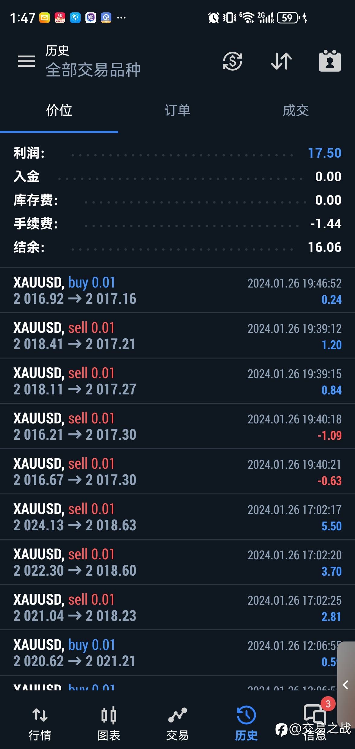 交易之战 01 Mar 2024, 09:40 · 阅读量 534 关注 1-昨日收益率1.34%2-昨日最大单笔开仓0.02手,最大单边总持仓0.09手!追求目标:仓位管理第一!盈利第二! 风险提示:本文所述仅代表作者个人观点,不代表 Followme 的官方立场。Followme 不对内容的准确性、完整性或可靠性作出任何保证,对于基于该内容所采取的任何行为,不承担任何责任,除非另有书面明确说明。 赞赏作者 喜欢的话,赞赏支持一下