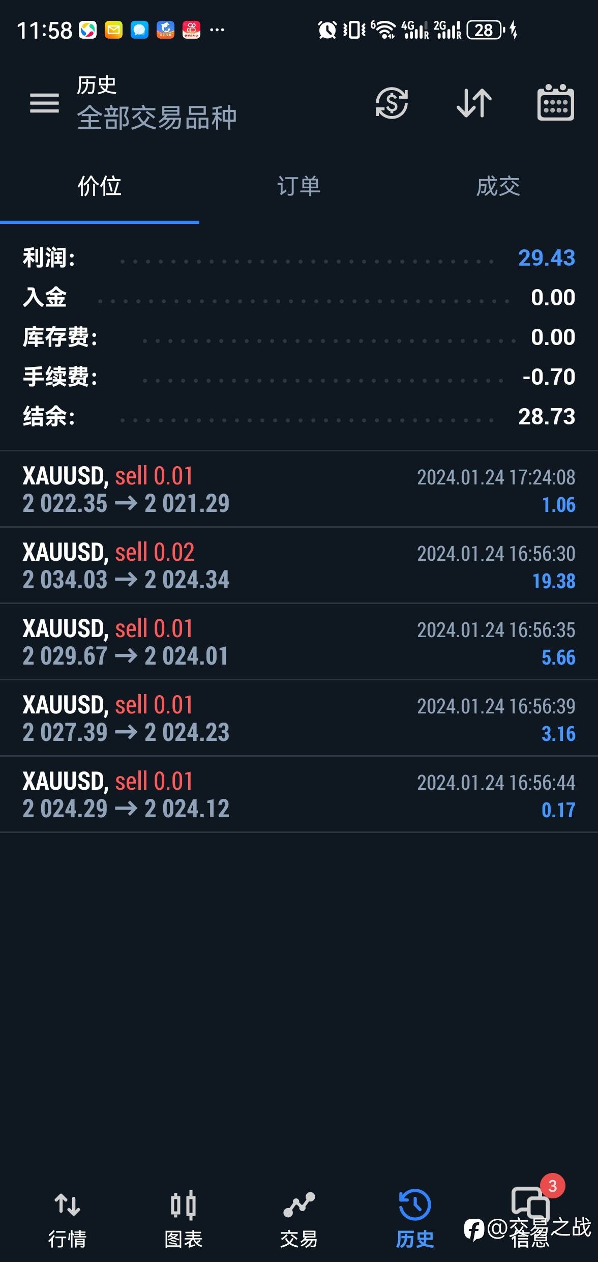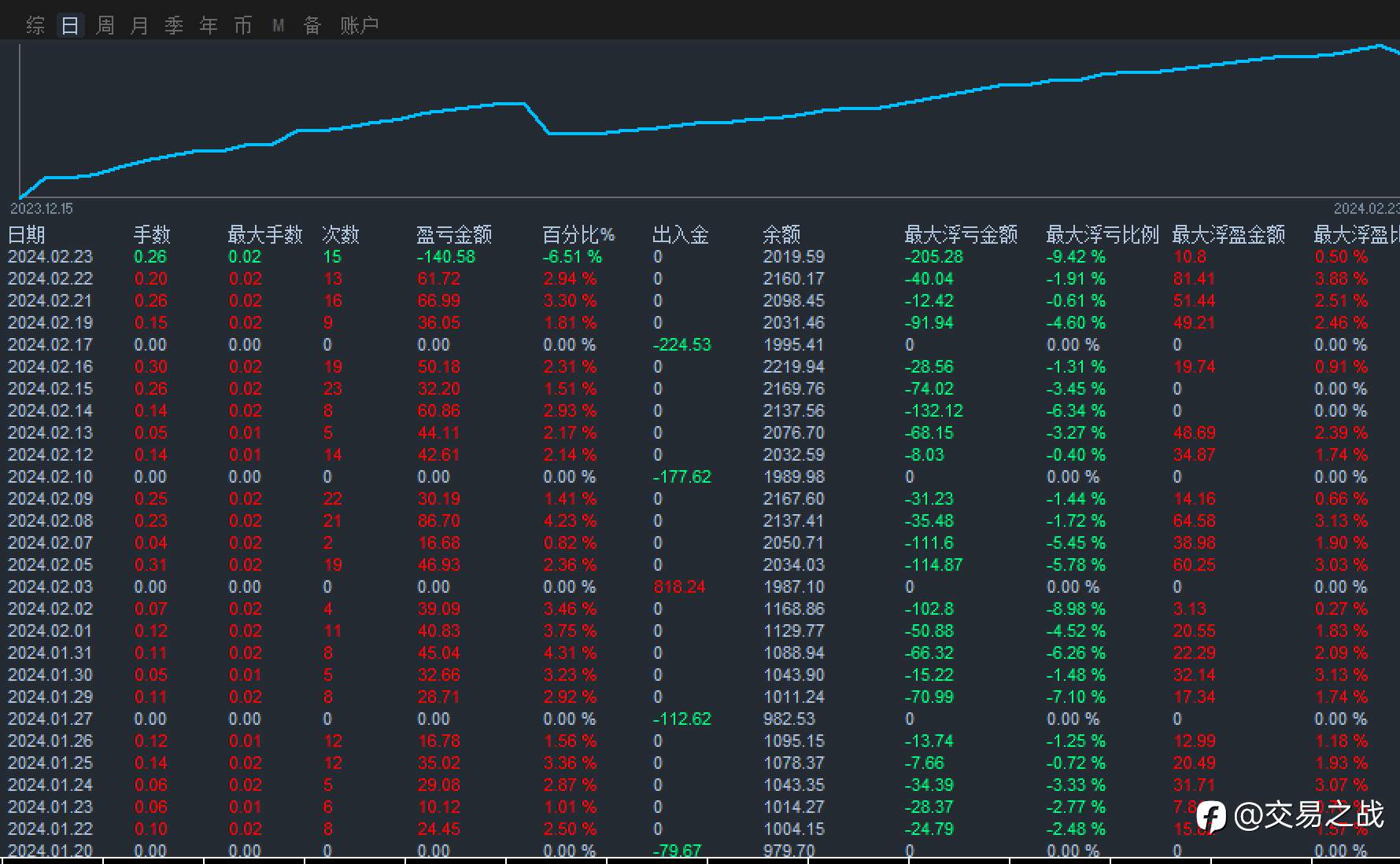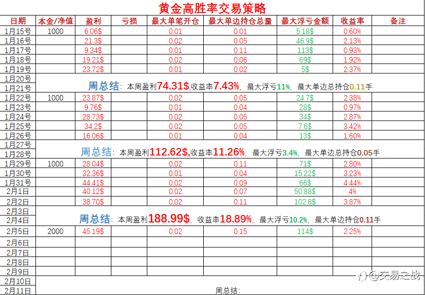 交易之战 02 Mar 2024, 10:42 · 阅读量 580 关注 1-昨日收益率2.44%2-昨日最大单笔开仓0.02手,最大单边总持仓0.21手!追求目标:仓位管理第一!盈利第二! 风险提示:本文所述仅代表作者个人观点,不代表 Followme 的官方立场。Followme 不对内容的准确性、完整性或可靠性作出任何保证,对于基于该内容所采取的任何行为,不承担任何责任,除非另有书面明确说明。 赞赏作者 喜欢的话,赞赏支持一下