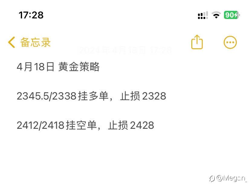 Megan_ 16 Apr 2024, 10:39 · 阅读量 504 关注 2372-71(多),仓位2%,2364(保护),2400止赢 #黄金外汇解盘# #行情分析# #交易策略# 风险提示:本文所述仅代表作者个人观点,不代表 Followme 的官方立场。Followme 不对内容的准确性、完整性或可靠性作出任何保证,对于基于该内容所采取的任何行为,不承担任何责任,除非另有书面明确说明。 赞赏作者 喜欢的话,赞赏支持一下