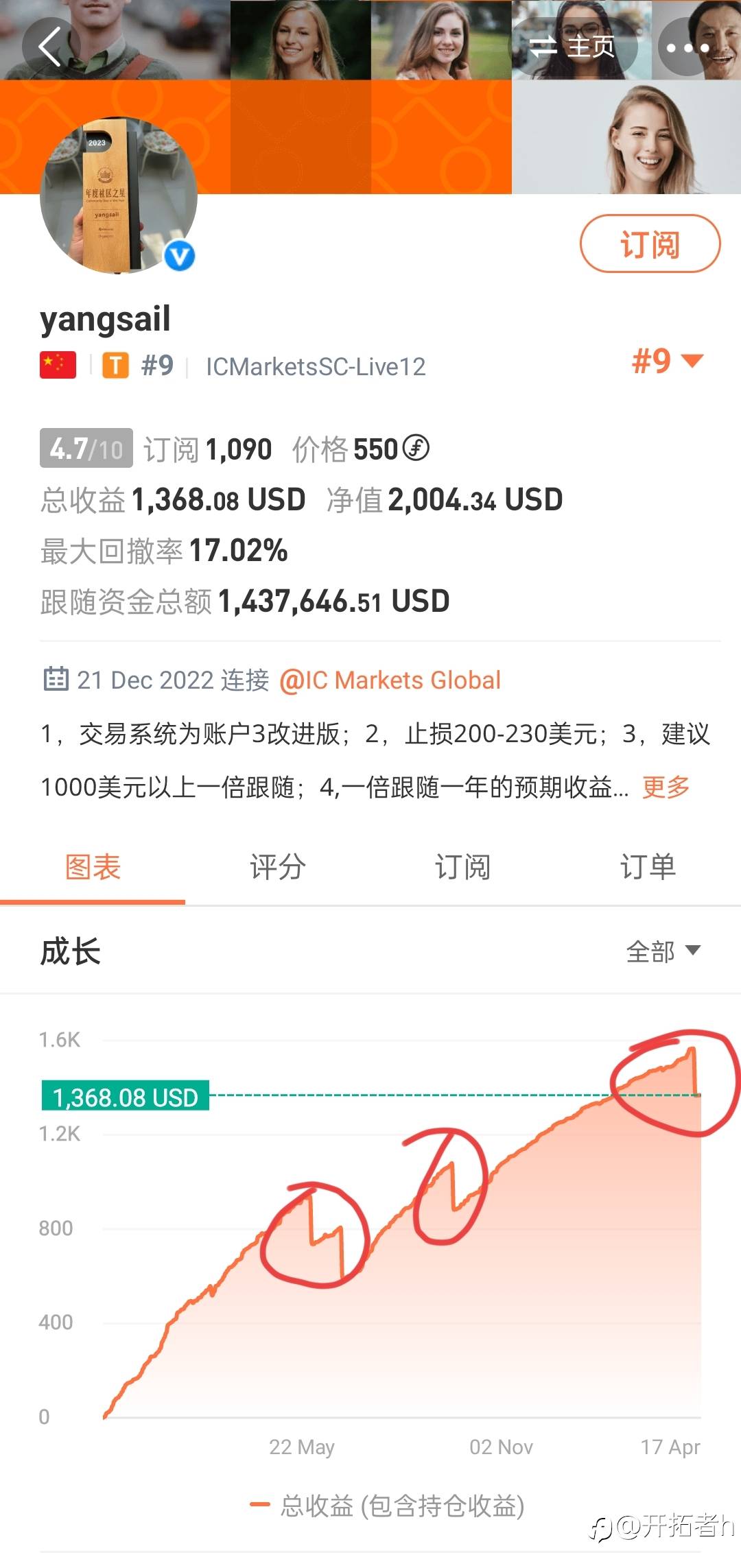 开拓者h 17 Apr 2024, 18:59 · 阅读量 2,690 关注 社区跟单收入第一人的账户出现第三次大幅回撤,本次回撤能否像前两次一样在低谷力挽狂澜,再创新高?让我们拭目以待。 风险提示:本文所述仅代表作者个人观点,不代表 Followme 的官方立场。Followme 不对内容的准确性、完整性或可靠性作出任何保证,对于基于该内容所采取的任何行为,不承担任何责任,除非另有书面明确说明。 赞赏作者 喜欢的话,赞赏支持一下