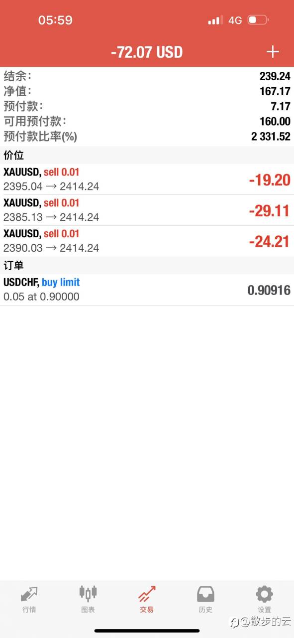 散步的云 22 May 2024, 06:25 · 阅读量 610 关注 磅日挂的突破多成交了,在今天最高点形成锁仓,好在来回做套赚了40刀,整体这个单子也没亏多少。金子震荡期间也是高空低多来,贡献了大部分利润。可惜的是欧美空和美日空没拿住,不然可能突破400。游戏还在继续,今天第四天,静值来到了第32关。 风险提示:本文所述仅代表作者个人观点,不代表 Followme 的官方立场。Followme 不对内容的准确性、完整性或可靠性作出任何保证,对于基于该内容所采取的任何行为,不承担任何责任,除非另有书面明确说明。 赞赏作者 喜欢的话,赞赏支持一下
