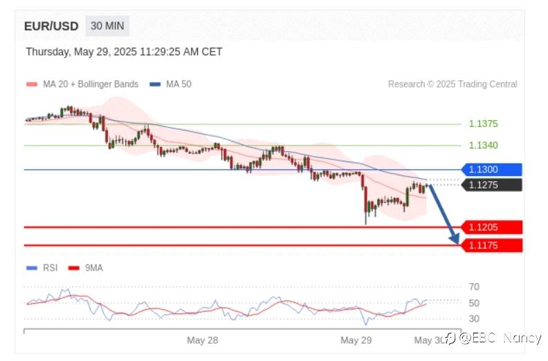 欧元/美元 当日内: 超短线(当日内)支撑位在1.1095附近。