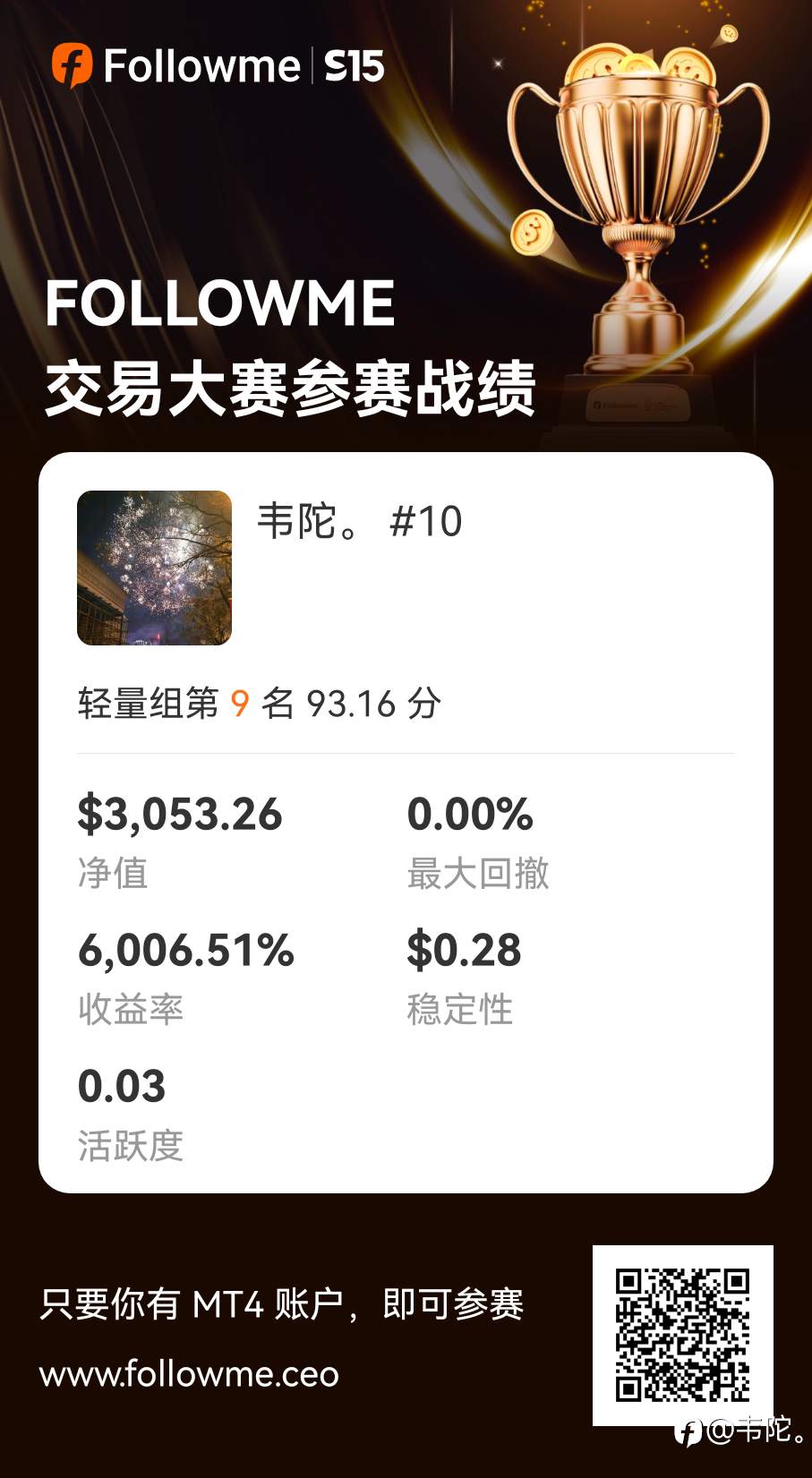 韦陀。 25 Nov 2024, 11:24 · 阅读量 1,499 关注 查看详情又不是神仙 ,哪里知道是头是尾,空单平仓了 魄力不够。休息休息 风险提示:本文所述仅代表作者个人观点,不代表 Followme 的官方立场。Followme 不对内容的准确性、完整性或可靠性作出任何保证,对于基于该内容所采取的任何行为,不承担任何责任,除非另有书面明确说明。 赞赏作者 喜欢的话,赞赏支持一下