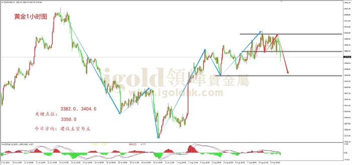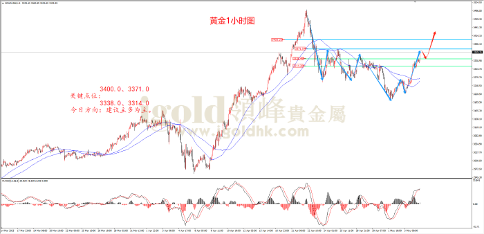 上图为白银1小时图。从形态结构看,白银超跌后开始一路反弹浪走势,高点不断抬高,中枢震荡重心不断向上,昨日多头强势突破近期形态压力位打开了上行空间,延续了多头走势浪结构,预计后市将继续震荡上行。综合MACD指标看,快慢线0轴上方运行, 多头力量主导行情。策略上建议顺多头趋势找支撑位埋伏多单思路为主。