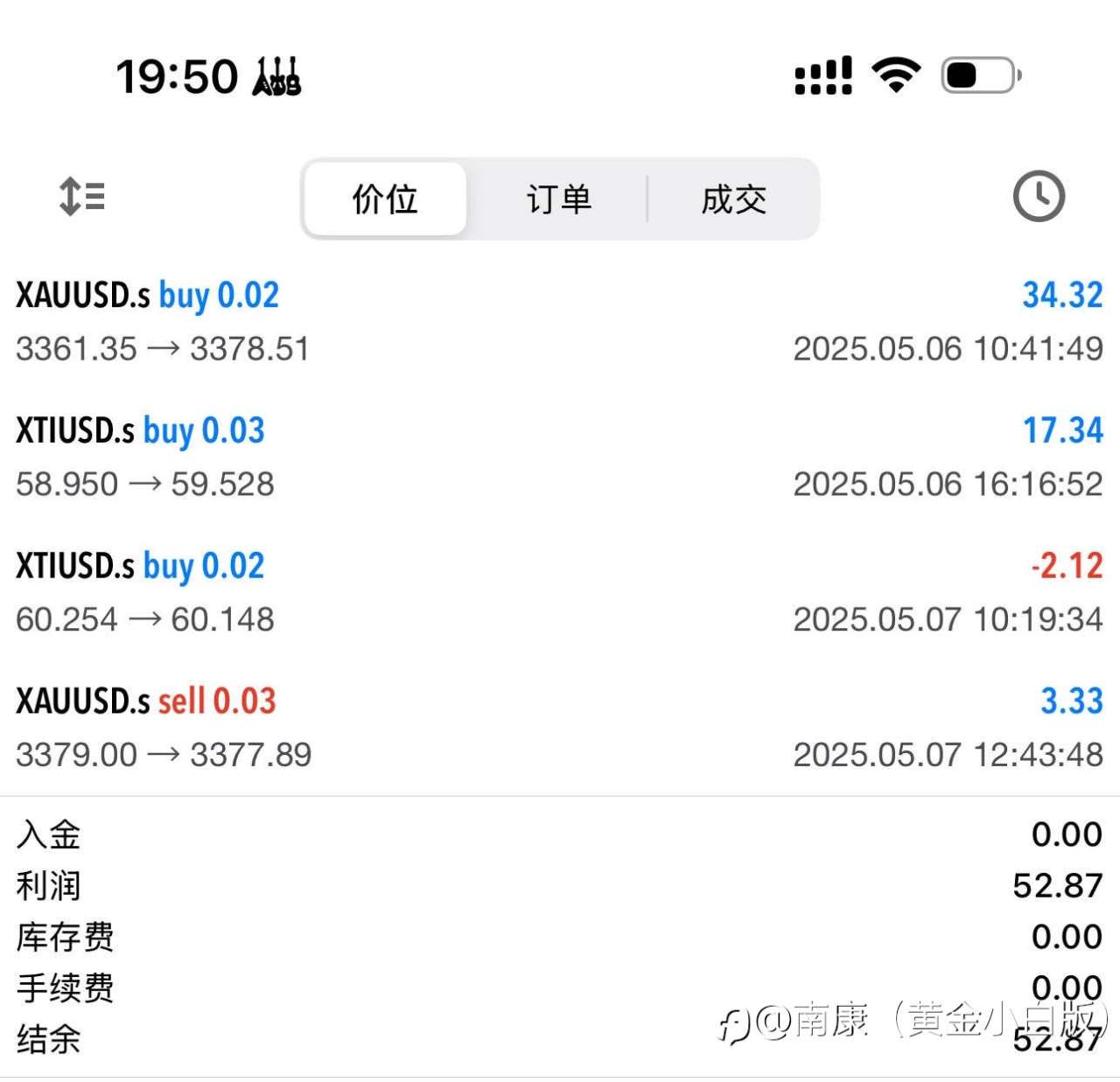 南康(黄金小白版) 07 May 2025, 20:00 · 阅读量 310 关注 还是有很多要学习的地方啊 #每日交易打卡# 风险提示:本文所述仅代表作者个人观点,不代表 Followme 的官方立场。Followme 不对内容的准确性、完整性或可靠性作出任何保证,对于基于该内容所采取的任何行为,不承担任何责任,除非另有书面明确说明。 赞赏作者 喜欢的话,赞赏支持一下