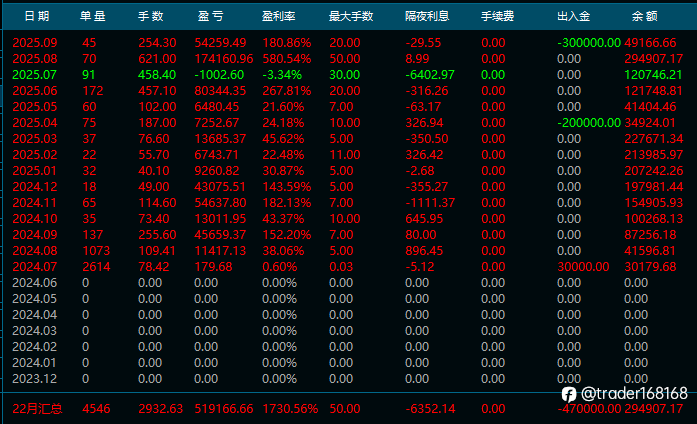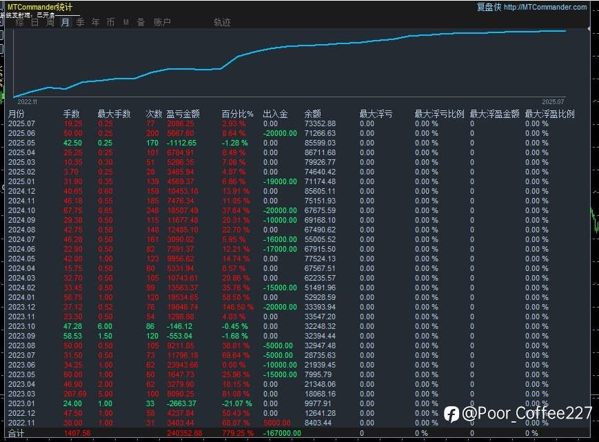 trader168168 21 Jul 2025, 11:26 · 阅读量 138 关注 查看翻译 5千美获利4万美金(获利8倍)✨ 策略亮点:▪️ 本金翻 7.7 倍,平均月收益高达 30%▪️ 秒单进出场,避开无效震荡与风险区域▪️ 不设置最大回撤,追求极限获利空间▪️ 实盘运行超过一年,波段逻辑稳健验证 风险提示:本文所述仅代表作者个人观点,不代表 Followme 的官方立场。Followme 不对内容的准确性、完整性或可靠性作出任何保证,对于基于该内容所采取的任何行为,不承担任何责任,除非另有书面明确说明。 赞赏作者 喜欢的话,赞赏支持一下