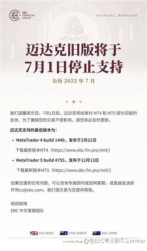 EBC Financial Group (UK) Ltd 由英国金融行为监管局(FCA)授权和监管,监管号:927552;EBC Financial Group (Australia) Pty Ltd由澳大利亚证券和投资委员会(ASIC)授权和监管,监管号:500991;EBC Financial Group(Cayman)Limited 由开曼金融管理局(CIMA)授权和监管,持有CIMA全监管牌照,监管号:2038223。